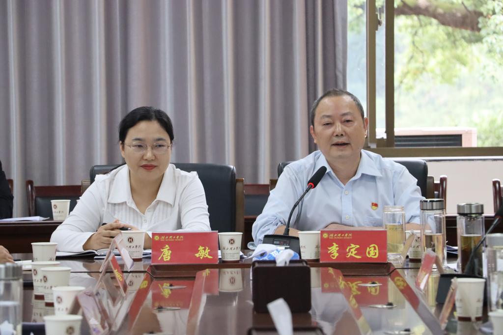 本网消息 10月15日,学校在X1-325会议室组织召开本年度党委理论学习中心组第九次学习扩大会议,深入学习《习近平谈治国理政》第五卷,全面贯彻落实习近平总书记在中共中央政治局第二十二次集体学习时的重要讲话精神,严格对标《中国共产党思想政治工作条例》,进一步筑牢学校思想防线,为学校高质量发展凝聚思想共识、夯实思政根基。市委巡听督导专家——湖北师范大学马克思主义学院李定国教授、黄石市委党校经济学教研室主任唐敏教授旁听督导。全体校领导,全体党委理论学习中心组成员,机关党委、各党总支书记参加会议。会议由党委书记张方胜主持。